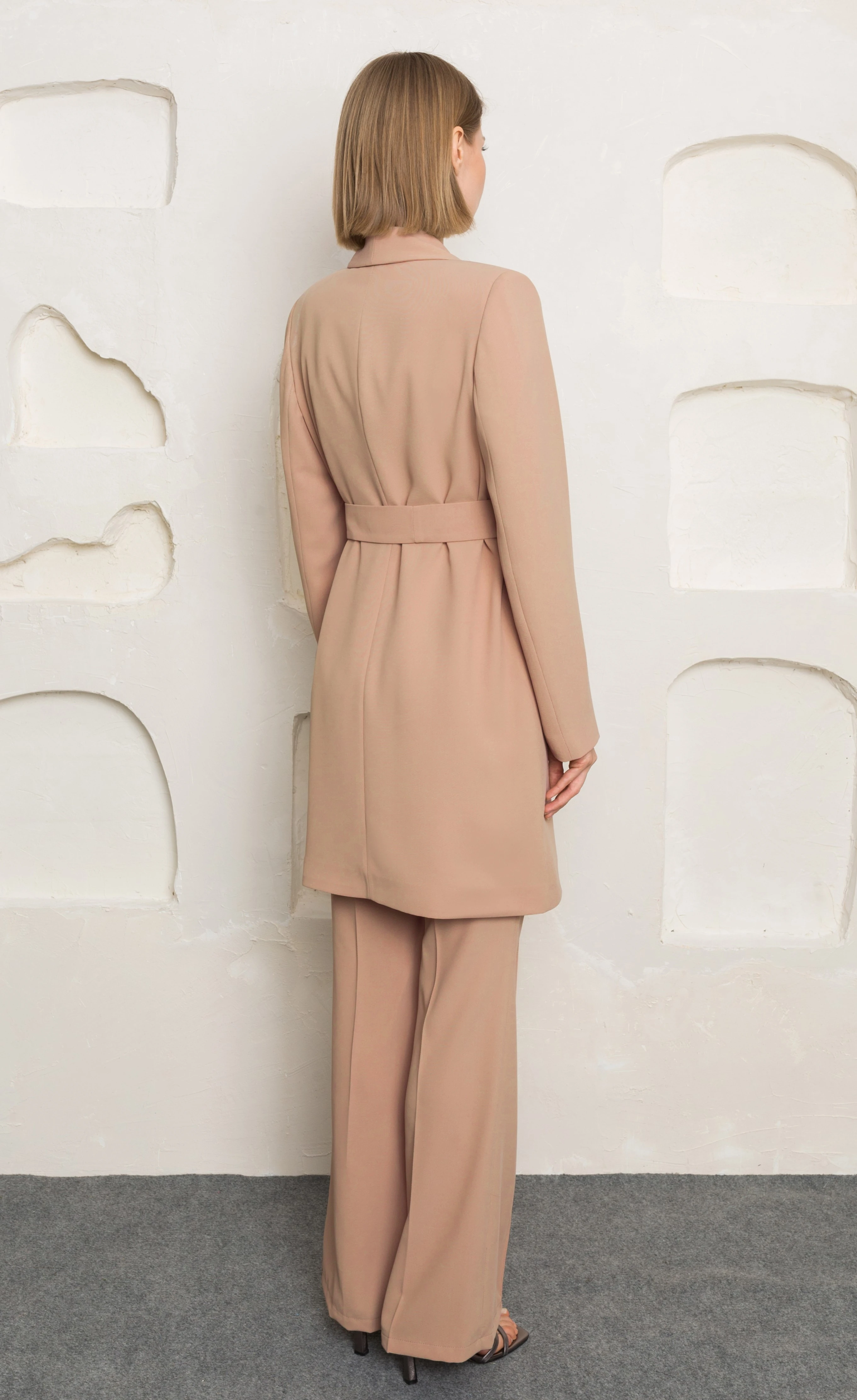 Şal yaka, astarlı, vatkalı, kuşaklı, kapaklı yalancı cepli blazer